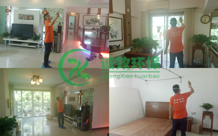 2017年7月13日,藍(lán)天花園(空軍小區(qū))位于廣州白云大道南739號(hào),業(yè)主錢小姐新房裝修后放了一個(gè)月,為了家人的健康考慮,錢小姐打算在入住新房前要對(duì)新房子進(jìn)行一次裝修除味治理。在網(wǎng)絡(luò)查找、對(duì)比、了解到裝修除味的方法中,最有效最安全最快捷的方法當(dāng)屬光觸媒除甲醛了。通過對(duì)多家廣州新房除甲醛公司的對(duì)比,最后選擇了使用誠(chéng)效光觸媒除甲醛的的誠(chéng)效環(huán)保公司上門進(jìn)行檢測(cè),錢小姐按照要求提前12個(gè)小時(shí)關(guān)閉門窗后的檢測(cè)數(shù)據(jù)是:甲醛超標(biāo)2倍、苯系物超標(biāo)1倍、TVOC超標(biāo)2倍。