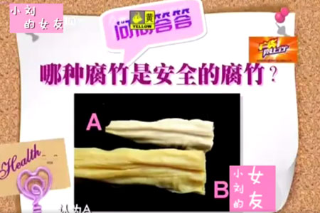 這種腐竹含“甲醛”,我們先看看下圖考考大家認為A是上面下面是B的腐竹的你們認為那一種腐竹是安全的腐竹,小編第一眼看覺得是A的腐竹顏色看起來比較健康一點,可同事沒都說B才是正常的的腐竹顏色,他們說腐竹在煮了之后才會有一點變白。不知道大家在買菜的時候會買那種腐竹啦?